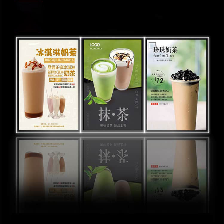 Features: LED sign edge lit interior acrylic indoor advertising crystal lightbox. Frameless clear acrylic light box sign led display. Backlit clear crystal light box. LED wall mount crystal light box interior advertising signage. Menu board LED crystal light boxes led poster.